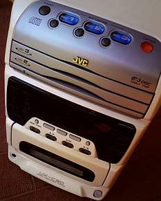Nous fuyons donc systématiquement les mini-chaînes combinées monobloc en plastique blanches grises ou noires, comme cette bouse en plastoc JVC [mascotte privée], ainsi que le matériel portable [sauf mini-platines vinyle ou CD], comme par exemple les vieux transistors à piles, les valisettes pick-up, ou bien encore les gros et très vieux appareils de radio TSF en bois ou bakélite, voire les énormes meubles hifi intégrés des années 50 (mono)/60 (stéréo), faute de place
