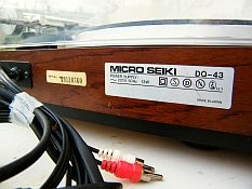 Sous son lourd plateau d'aluminium moulé et son épais couvre-plateau en caoutchouc, le moteur d'entraînement direct de cette chouette MICRO SEIKI DQ-43 Vintage est encastré dans une luxueuse, large et épaisse caisse en bois exotique type macassar (?), placage verni de toute beauté globalement en excellent état